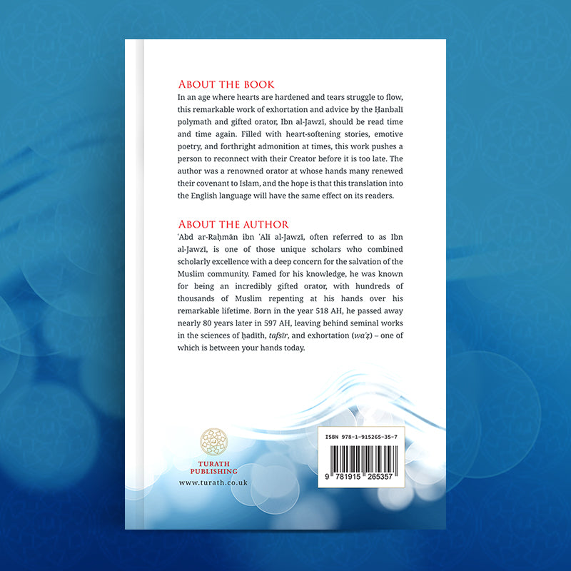 In an age where hearts are hardened and tears struggle to flow, this remarkable work of exhortation and advice by the Ḥanbalī polymath and gifted orator, Ibn al-Jawzī, should be read time and time again. Filled with heart-softening stories, emotive poetry, and forthright admonition at times, this work pushes a person to reconnect with their Creator before it is too late. The author was a renowned orator at whose hands many renewed their covenant to Islam, and the hope is that this translation into the English language will have the same effect on its readers.