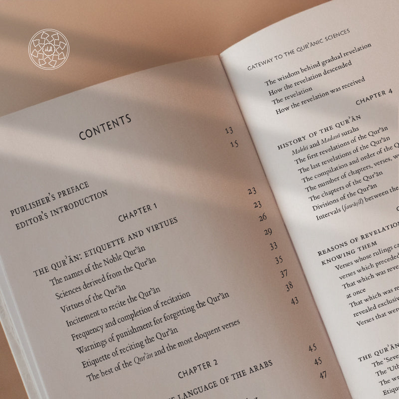 Allah describes the Qurʾān as the ‘guidance to mankind, and the Criterion (of right and wrong)’ (2:185). Islamic scholars have therefore sought to explain the sciences associated with correctly understanding the revelation. This discipline has come to be known as ʿUlūm al-Qurʾān, or ‘sciences of the Qurʾān’, and includes many subjects, such as the nature and order of revelation, explanations of the types of expressions used in the revelation and how the sacred text is to be correctly recited. Imam Jalāl ad-Dīn as-Suyūṭī wrote one of the leading comprehensive manuals on ʿUlūm al-Qurʾān entitled al-Itqān fī ʿUlūm al-Qurʾān. The text here translated is a summary by Ṣalāḥ ad-Dīn Arqahudān of many major topics covered in the Itqā