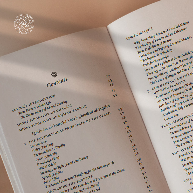 The fundamental doctrines that make up the Islamic belief have been documented in creedal texts. One that is considered to capture the sound expression of Islamic belief is that written by Islam’s most eminent scholar, Abū Ḥāmid al-Ghazālī (d. 505/1111). Its simplicity has made it an appealing text to teach and learn since it was written.One commentary of the text, relatively unknown among English readership is that of the 15th century CE Shādhilī Ṣūfī reformer of Morocco Sīdī Aḥmad Zarrūq (d. 899/1493) entitled Ightinām al-Fawā’id fī Sharḥ Qawaʿid al-ʿAqa’id. Its descriptive lucidity and simplicity make it an ideal commentary for readers seeking familiarity with the major terms, ideas and arguments of orthodox Sunnī Islamic doctrine.